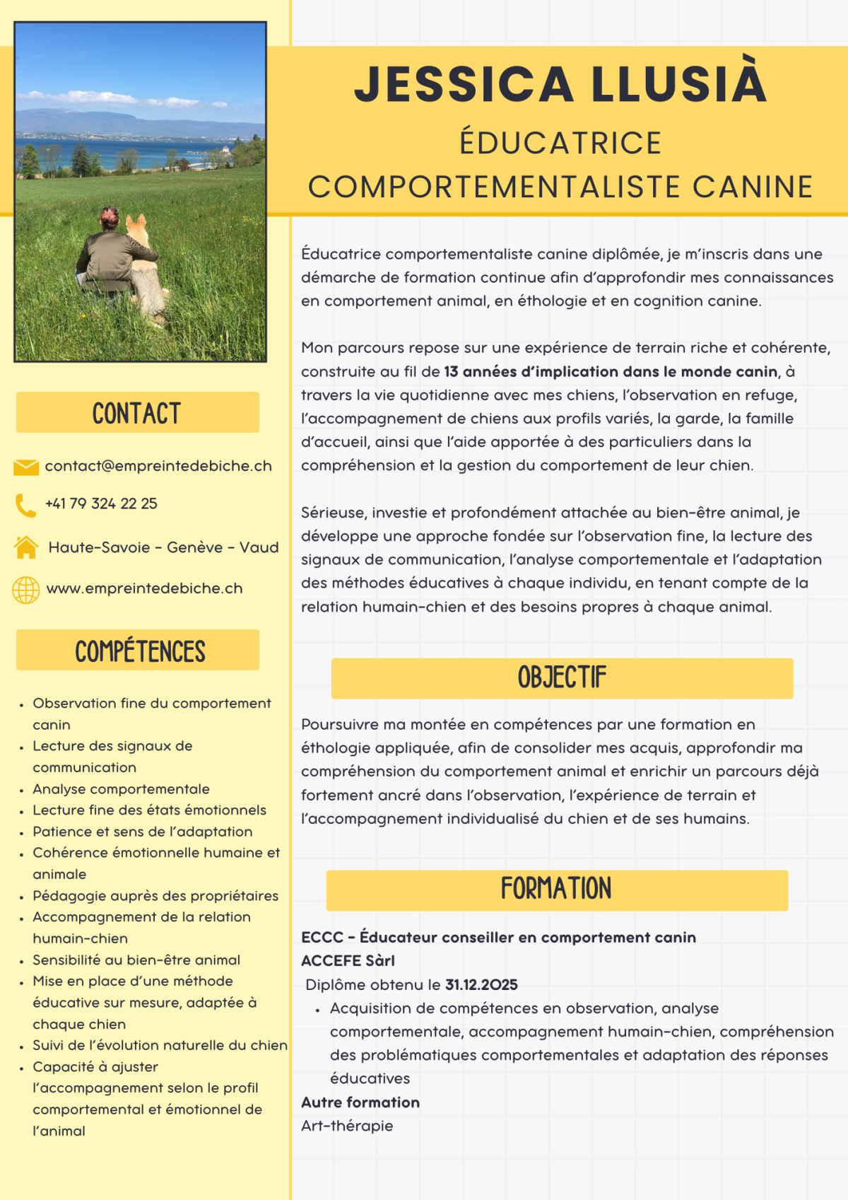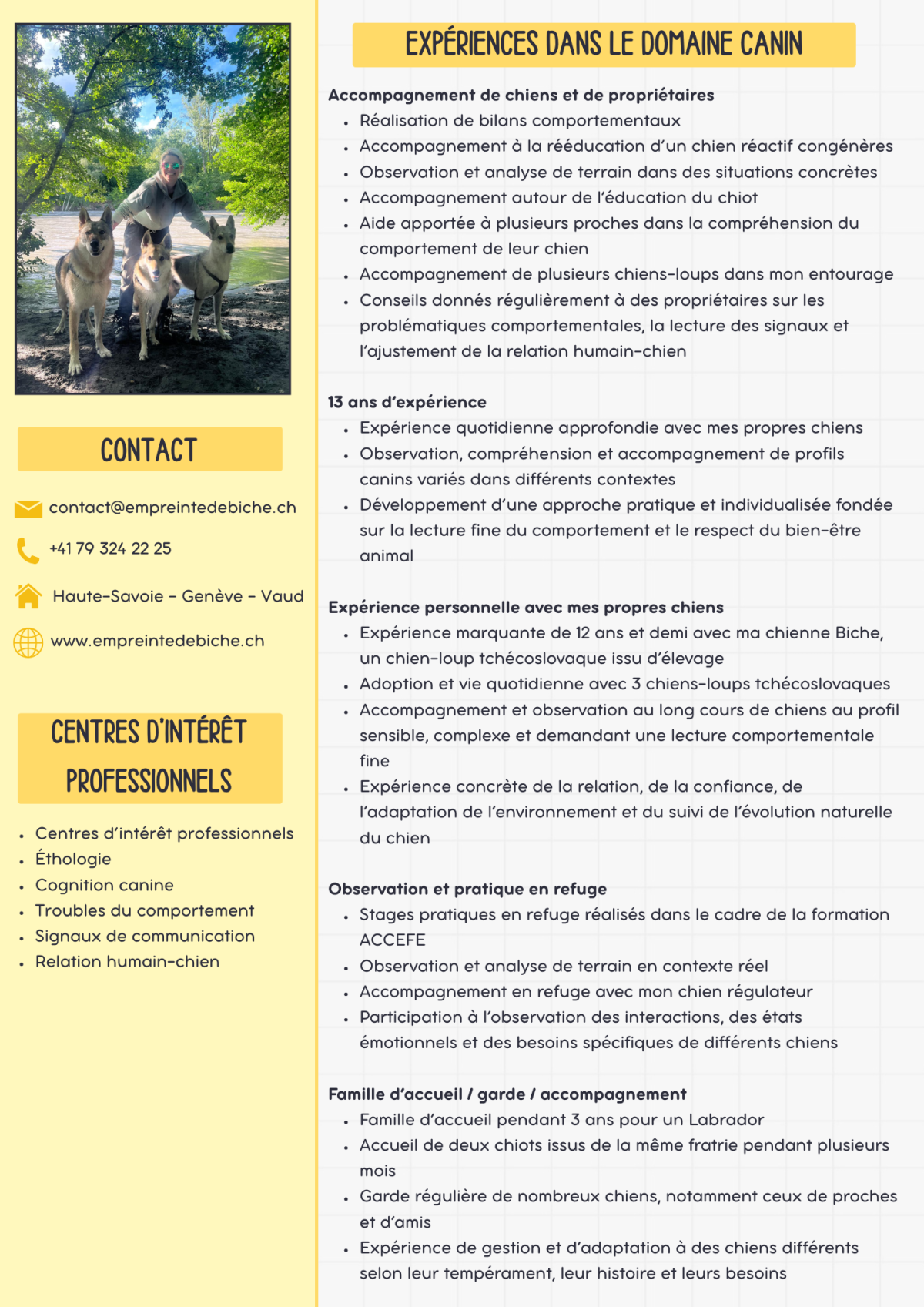 Vous trouverez ci-dessous mon CV dans le domaine canin.
